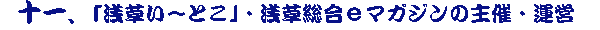 We run and support the Web site for "everything in Asakusa". Many things which even the fans of Asakusa don't know are here. Many places the beginners about Asakusa will be favorite are here. This is the Web site of "All that's Asakusa!" in which only nice places in Asakusa are choosen and shown.